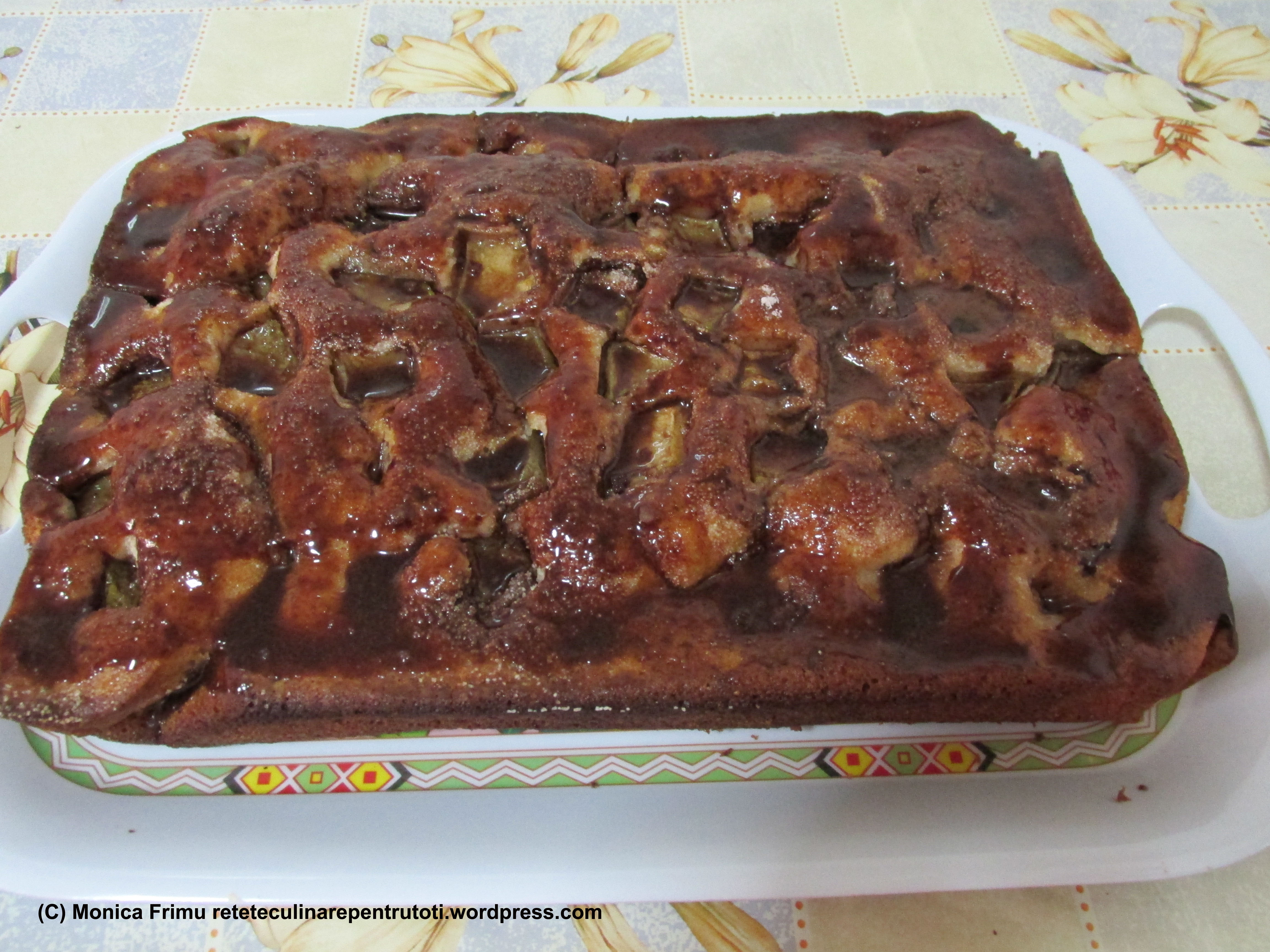 Se pune în cuptor, la foc mic, aprox. 40 min. Se scoate şi se însiropează cald cu un sirop din: 1 l apă+5 linguri de zahăr+câteva cuişoare, fiert pe foc, până se dizolvă zahărul.