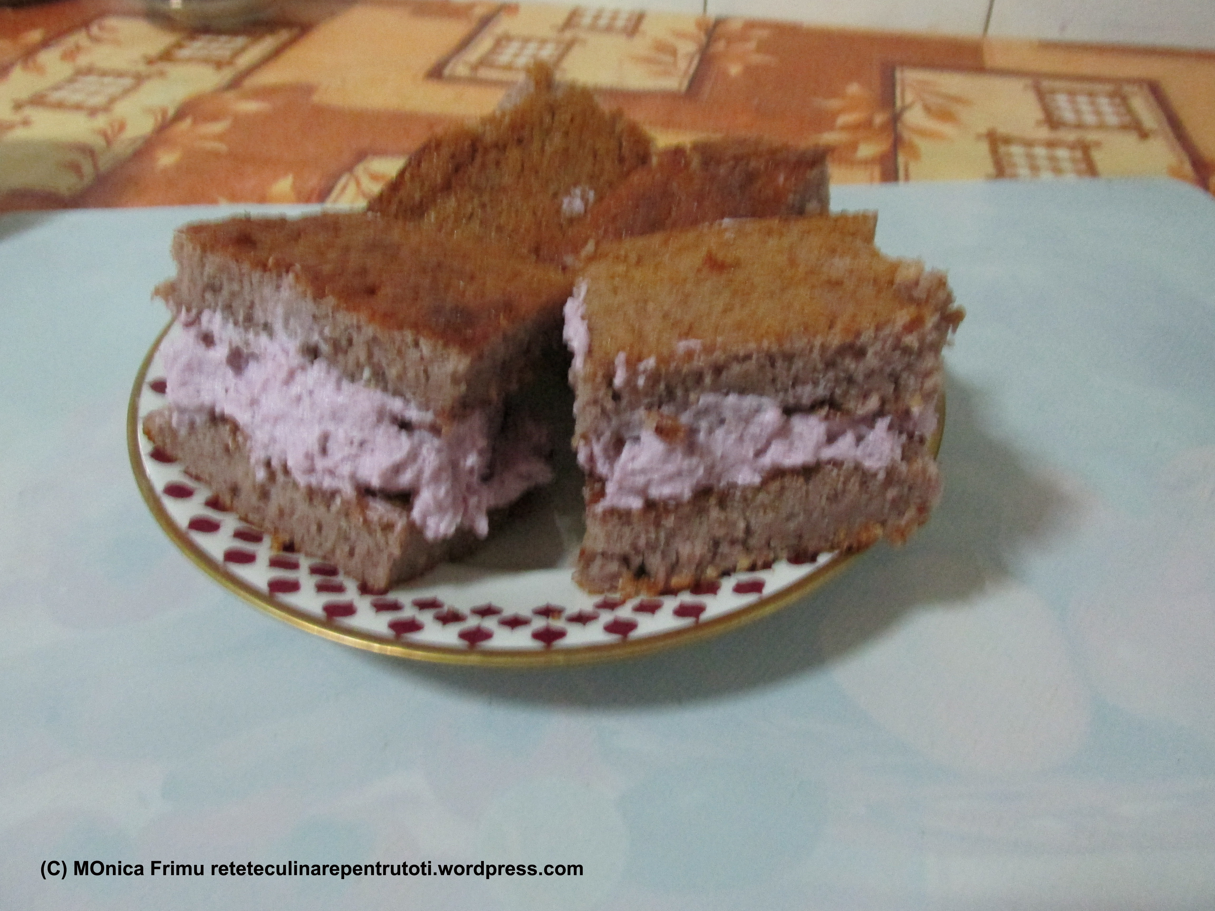 CREMA: zdrobim boabele de la 2 rodii la blender, amestecăm piureul cu zahărul, fierbem până se îngroasă puţin, răcim şi amestecăm cu 200 ml de frişcă bătută