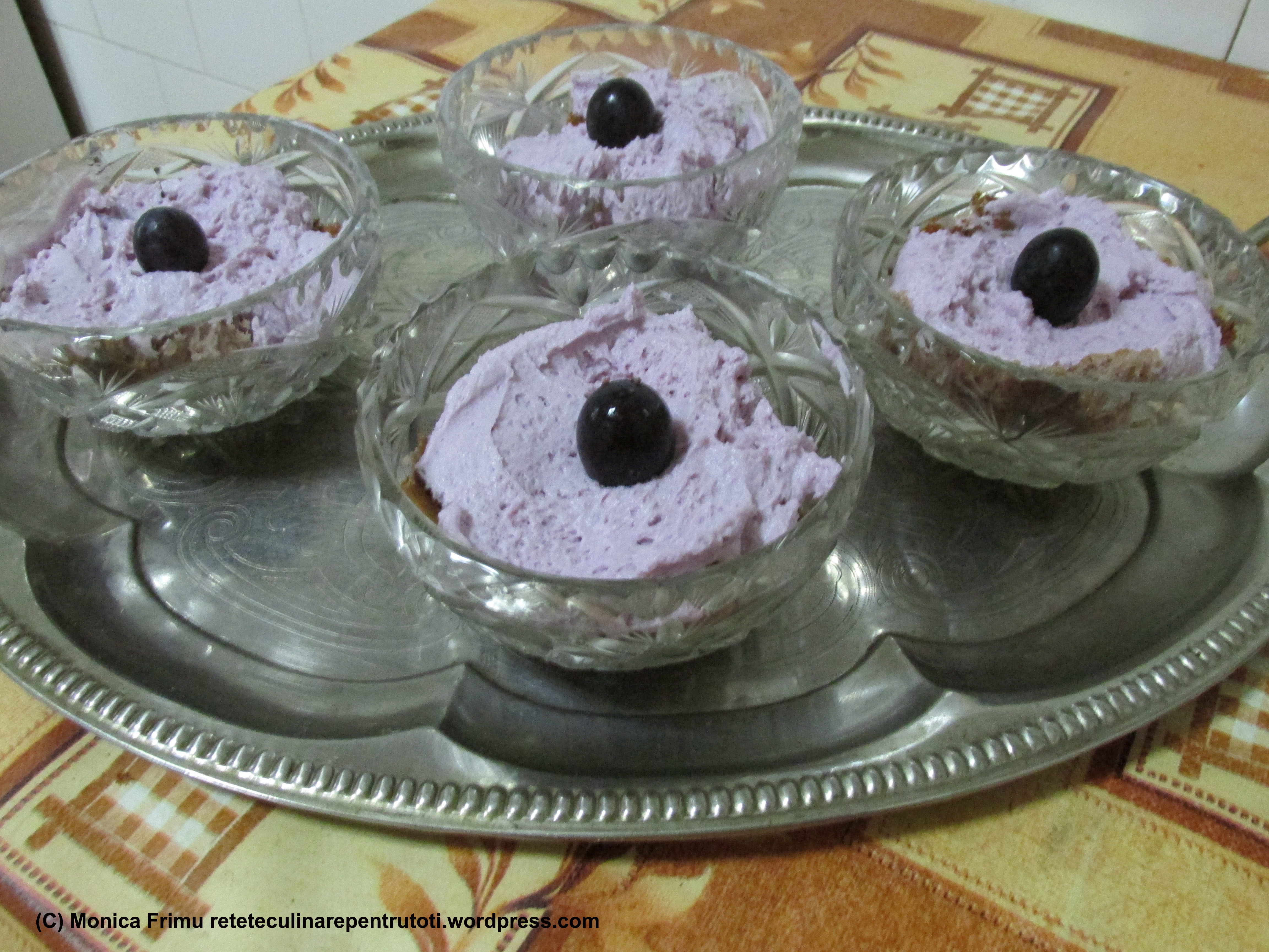 Pentru că mi-a ieşit prea multă cremă am pus în castronele, pe fund, pişcoturi înmuiate în zeama de la rodii şi deasupra crema.