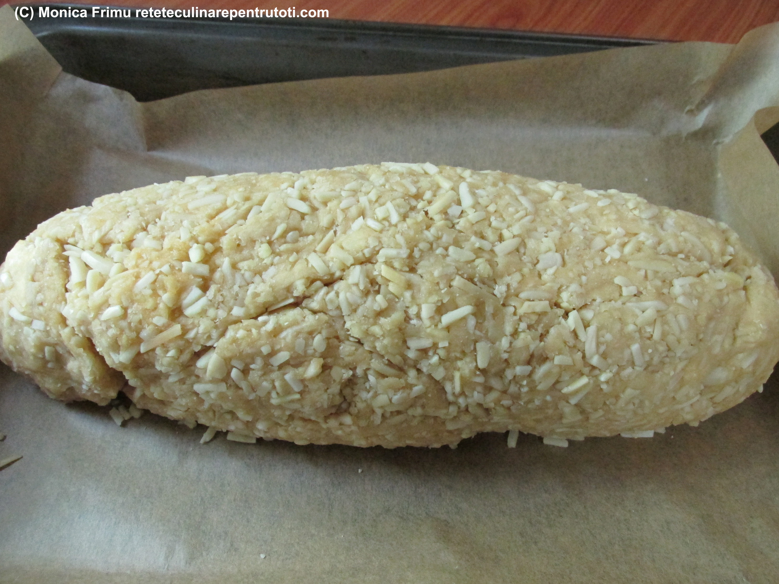 – 600 g de făină, 6 ouă, 1 plic de praf de copt, 1 plic Finesse coaja rasă de lămâie, 350 g de migdale tăiate fâșii