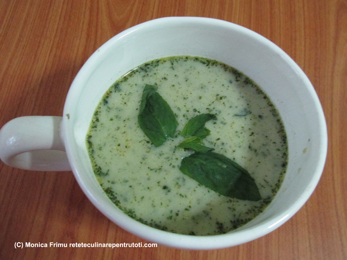– 200 g castraveți, 100 g cartofi, 1 ceapă, 1 cățel de usturoi mare, 1 lingură unt, 250 ml lapte, 1 linguriță chimion, 1 linguriță piper negru măcinat, 750 ml apă, 10 g frunze de mentă proaspătă (o mână), sare, zahăr
