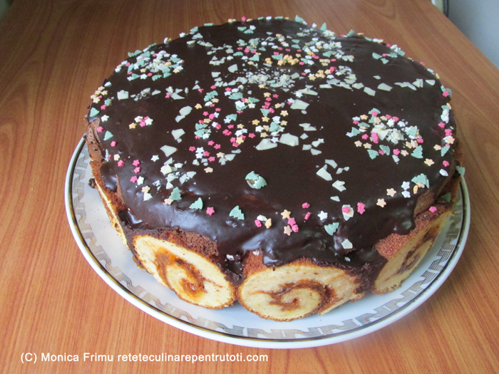 Tort ruladă de caise cu ciocolată