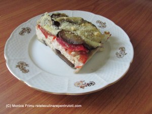Așezăm restul rondelelor de vânătă, deasupra brânza rămasă. Punem în cuptor, la foc mediu, aprox. 40-45 min. Curățăm usturoiul și tăiem mărunt. Porționăm, opțional presărăm cu usturoi și servim.