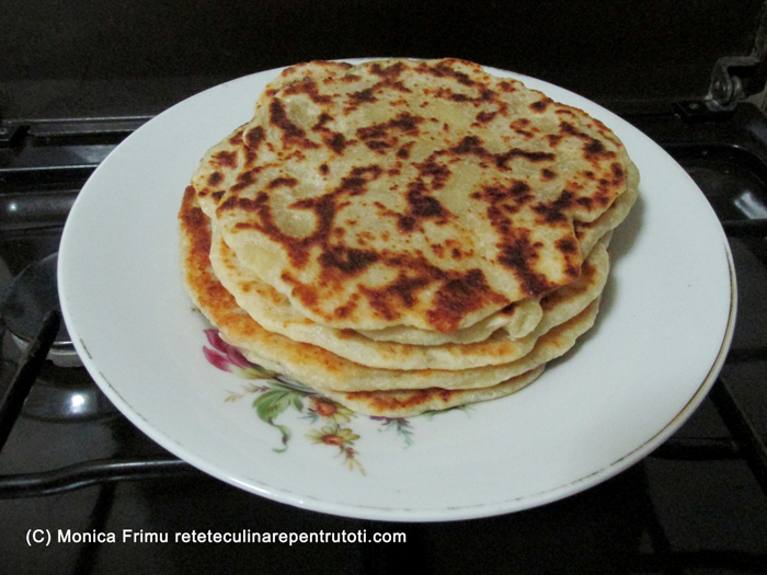 Încălzim iaurtul la 38 grade, amestecăm cu sarea, zahărul, bicarbonatul și lăsăm să stea 5 min. Radem cașcavalul mic, amestecăm cu iaurtul, punem făina și formăm cu mâinile un aluat. Îl împărțim în 5 părți egale și întindem sub formă de turtă. Eu le-am întins mai subțiri. Încingem puțin ulei într-o tigaie, punem turtele și prăjim sub capac, la foc mediu, 2-3 min. Servim fierbinți.