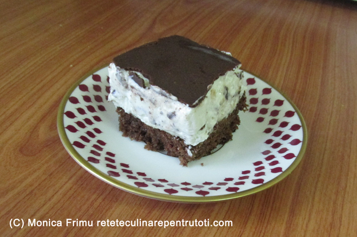 – pt. cremă- 200 g ciocolată albă, 4 linguri sirop de mentă, 750 ml frișcă