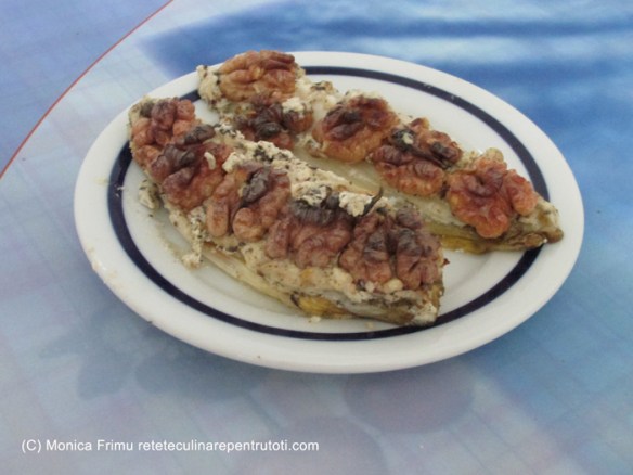 – 2 andive, 80 g brânză Feta, 50 g jumătăți de nucă, 40 g smântână, ½ lingură busuioc uscat, 1 lingură oțet, 2 lingurițe zahăr, sare, piper, ulei, apă