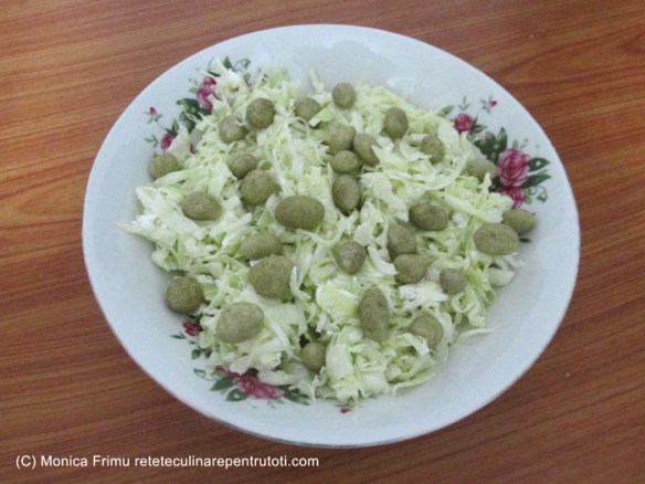– 250 g varză dulce, 50 g brânză Feta, 20 g alune cu Wasabi, 1 linguriță Vegeta, 1 lingură ulei de arahide, ½ linguriță sare
