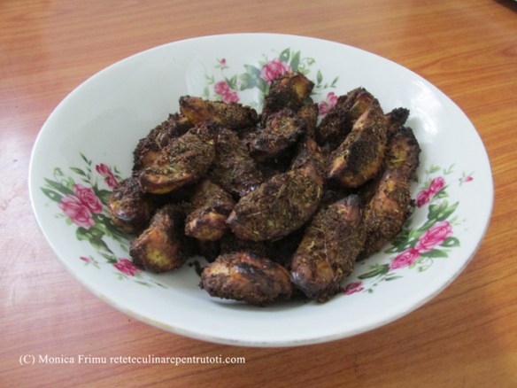 – 500 g cartofi, 1 lingură Mirodenia ardei și tomate, câte ½ lingură mărar uscat, busuioc uscat, rozmarin uscat, 2 linguri pesmet fin, 2 linguri ulei