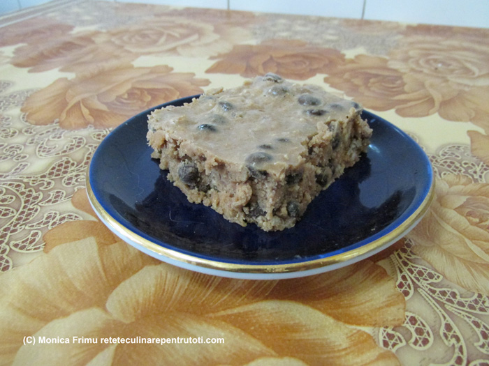 Punem în cuptorul preîncălzit la foc mai mic (160) 1 oră, scădem temperatura puțin (150) și mai coacem 1 ½ oră, până trece testul cu scobitoarea (folosim un băț din lemn pentru frigărui). Scoatem, înțepăm din loc în loc și turnăm cognacul rămas de la fructe.