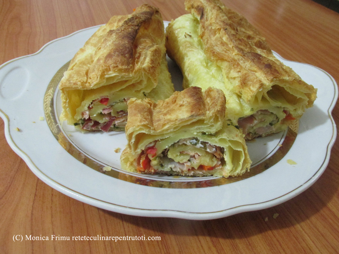 Foietaj cu cremă de brânză, șuncă afumată și ardei