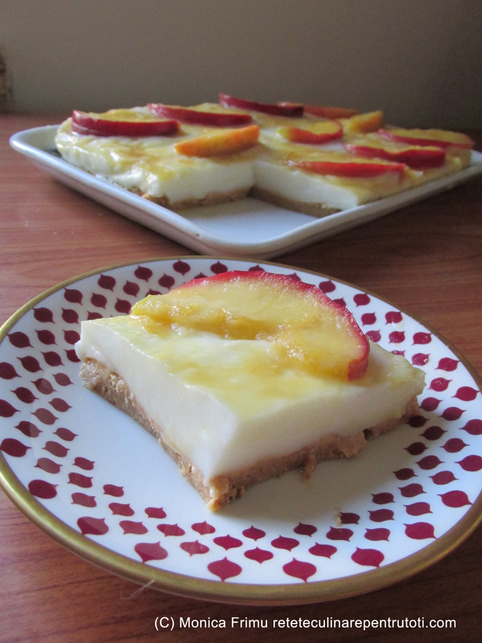Măcinăm biscuiții, amestecăm cu siropul și gemul. Topim margarina și încorporăm în biscuiți. Tapetăm o tavă (26×18 cm) cu folie de aluminiu și, cu mâinile, întindem uniform compoziția formând blatul. Întindem uniform iaurtul și punem în frigider până a doua zi.