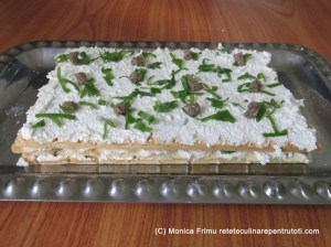 – pt. umplutură- 500 g brânză de vaci, 400 g vișine din compot, 4 ouă, 500 ml lapte, 50 g zahăr praf, 1 plic zahăr vanilat; în plus 100 g unt topit și zahăr praf