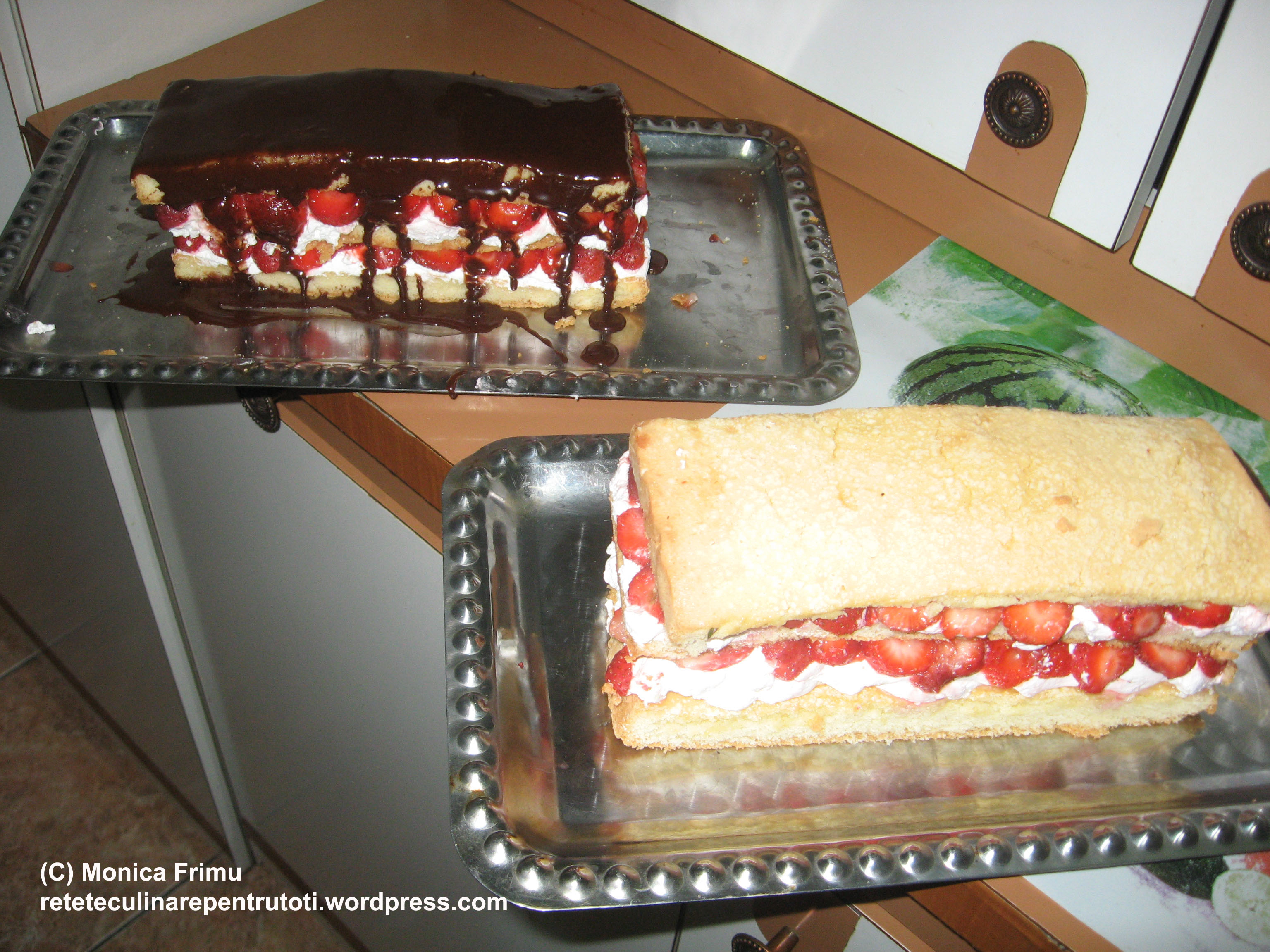 – în plus câte 50 g nucă de cocos şi nucă măcinată, 300 g căpşuni