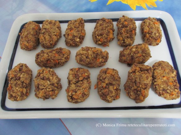– 1 conservă linte (260 g), 1 conservă năut (240 g), 70 g morcov, 50 g ceapă, 1 cățel mic de usturoi, 2-3 linguri faină, 2 boabe ienibahar, ½ linguriță Garam Masala, ulei, sare