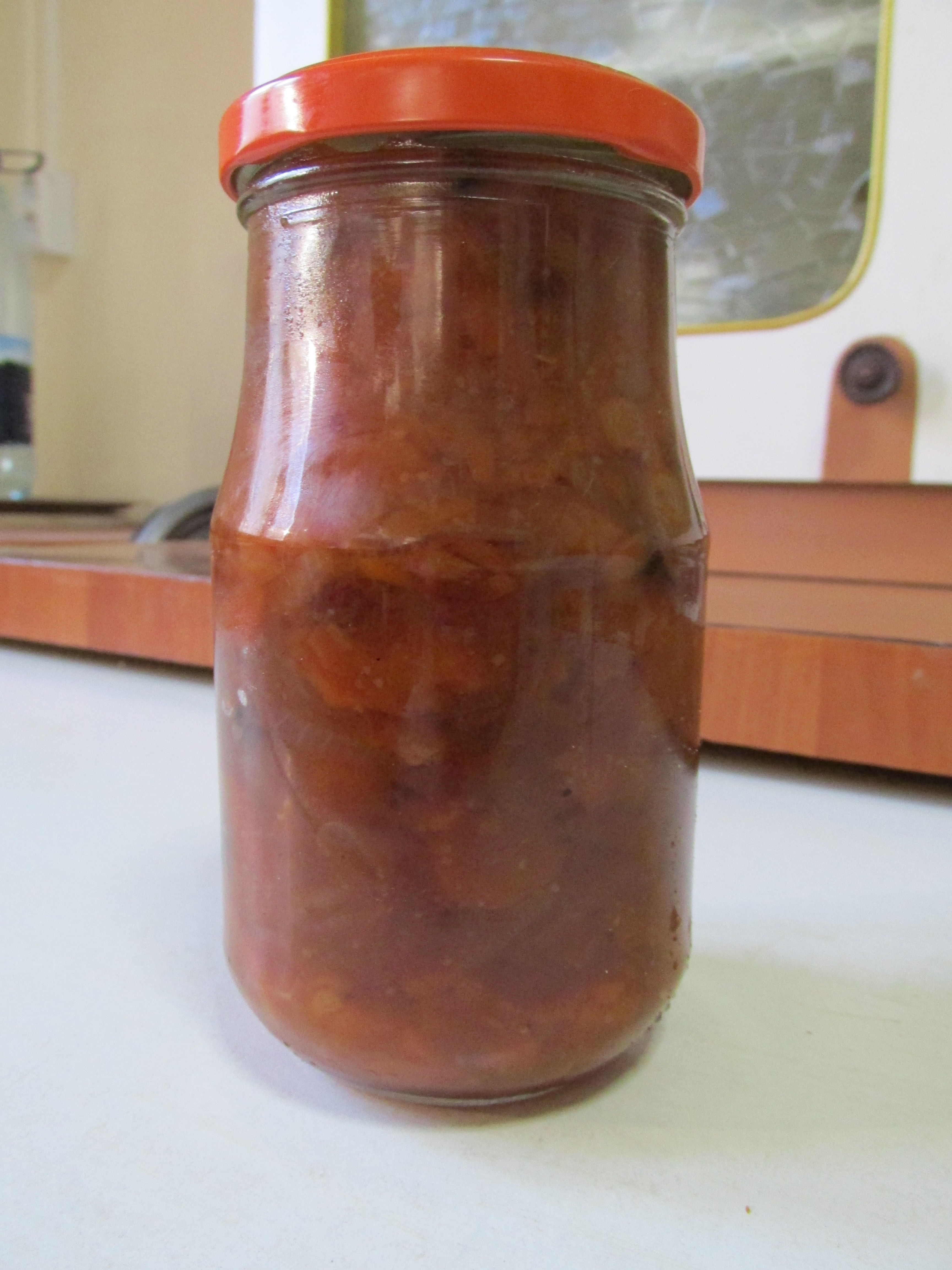 – 2 kg de morcovi, 1 kg de ceapă, 4 căni de oţet de vin, 4 căni de zahăr, 1 lingură de sare, 1 cană de stafide, 1 linguriţă rasă de cuişoare, 1 linguriţă rasă de boabe de piper negru, 3 linguri de făină de porumb (mălai), 3 linguri de boia
