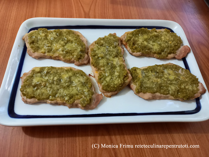 – 1 kg cotlet de porc fără os, 100 g șuncă afumată feliată, 100 g cașcaval, 2 lingurițe praf de usturoi, câte 1 linguriță boia de ardei dulce și sare, câte ½ linguriță piper negru măcinat și praf de cimbru, ulei, apă