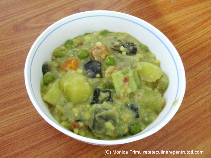 – 250 g vinete, 250 g dovlecei, 250 g cartofi, 200 g castraveți amari (bittergourd/kerala), 100 g roșii, 100 g mazăre congelată, 100 g morcovi, 2 chilli verzi, 20 g ghimbir proaspăt, 120 g cus cus, 3 linguri semințe de muștar negru, 1 lingură condimente Panch Phoran, 1 linguriță zahăr de palmier, ¼ linguriță turmeric, 2 lingurițe sare, 125 ml lapte, 400 ml apă, 4 linguri ulei de arahide/vegetal