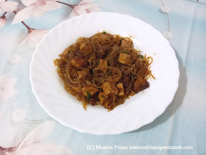Tăiței chinezești cu Pak Choi, dovlecel, tofu și susan