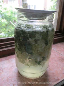 – 100 g flori de soc, 100 g frunze de mentă, 200 g zahăr, 50 ml suc de lămâie, 1,3 l apă