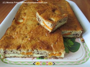 Punem în cuptorul preîncălzit, la foc mediu, aprox. 35-40 min. Răcim, scoatem pe un platou, opțional pudrăm cu zahăr praf, porționăm și servim.