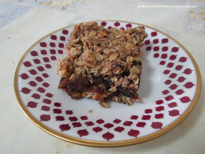 – pt. blatul cu fulgi de ovăz- 200 g fulgi de ovăz, 300 g făină, 5 g praf de copt, 200 g zahăr, 125 g unt, 1 esență de cocos, sare