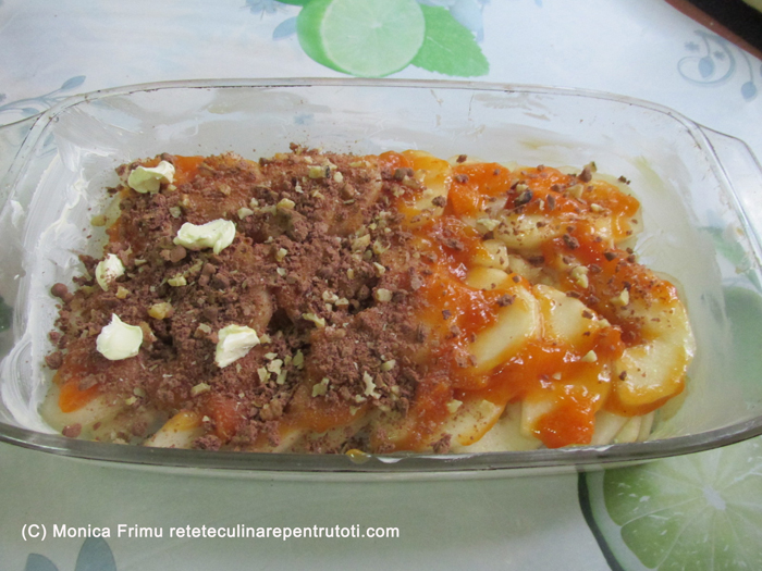 – în plus- 150 g gem de caise, 2 linguri fulgi de cocos colorați