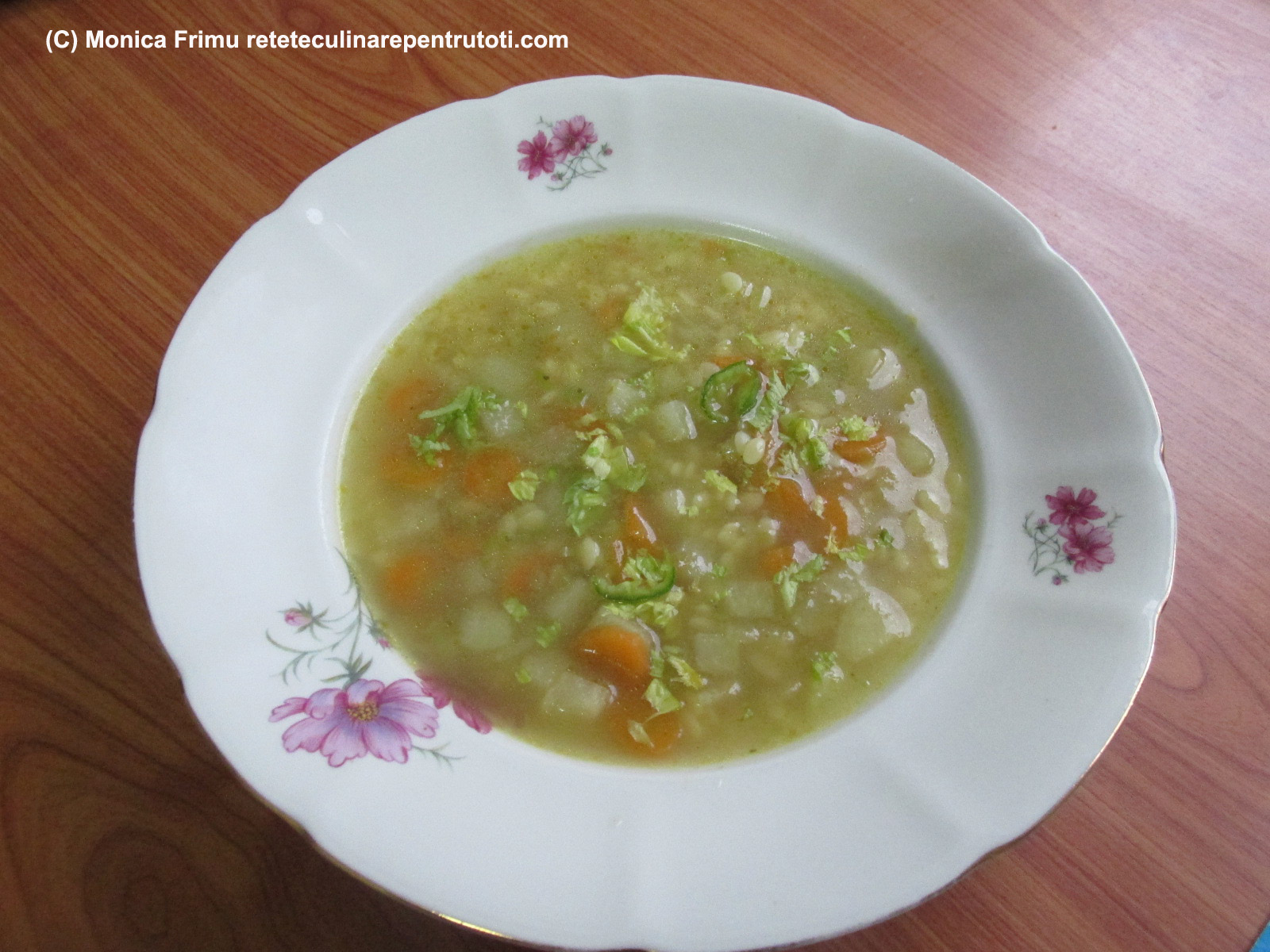 – 1 gulie (aprox. 300 g), 150 g morcovi, ½ fir de praz, 1 tijă apio cu frunze, 1 lingură chimen măcinat, ¼ linguriță Garam Masala, 1 bucată ghimbir 3 cm, 1 lingură ulei, 1 lingură Secretul Gustului, apă, 100 g paste Semola, opțional ardei iute verde