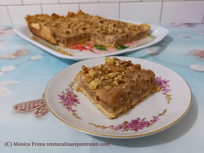 – pentru umplutură- 3 ouă, 1 kg pere, 150 g nuci, 2 linguri zahăr, 200 ml lapte