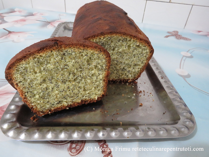 Mixăm albușurile spumă tare cu un praf de sare, adăugăm treptat zahărul și mixăm până devin cremoase și lucioase. Încorporăm făina, untul, macul, amestecând ușor cu o lingură, de jos în sus. Turnăm compoziția într-o tavă (26×20 cm) tapetată cu hârtie de copt și nivelăm. Punem în cuptorul preîncălzit, la foc mediu, 15-20 min. (testul cu scobitoarea) Răcim pe un grătar, îndepărtăm hârtia și tăiem ½ pe lățime.