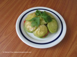 – 1 dovlecel, 1 roșie medie, 2 linguri măsline negre feliate, 1 linguriță fulgi de usturoi, 1 lingură ulei, 1 linguriță Vegeta, 1 cățel de usturoi, 2 linguri maioneză light, 50 ml apă, sare