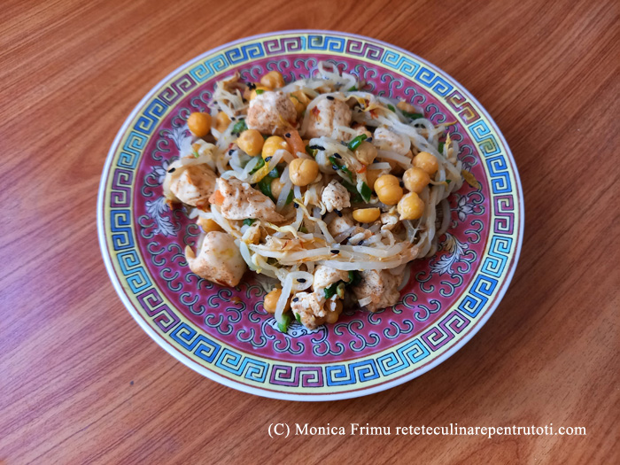 Piept de pui cu năut și muguri de fasole Mung