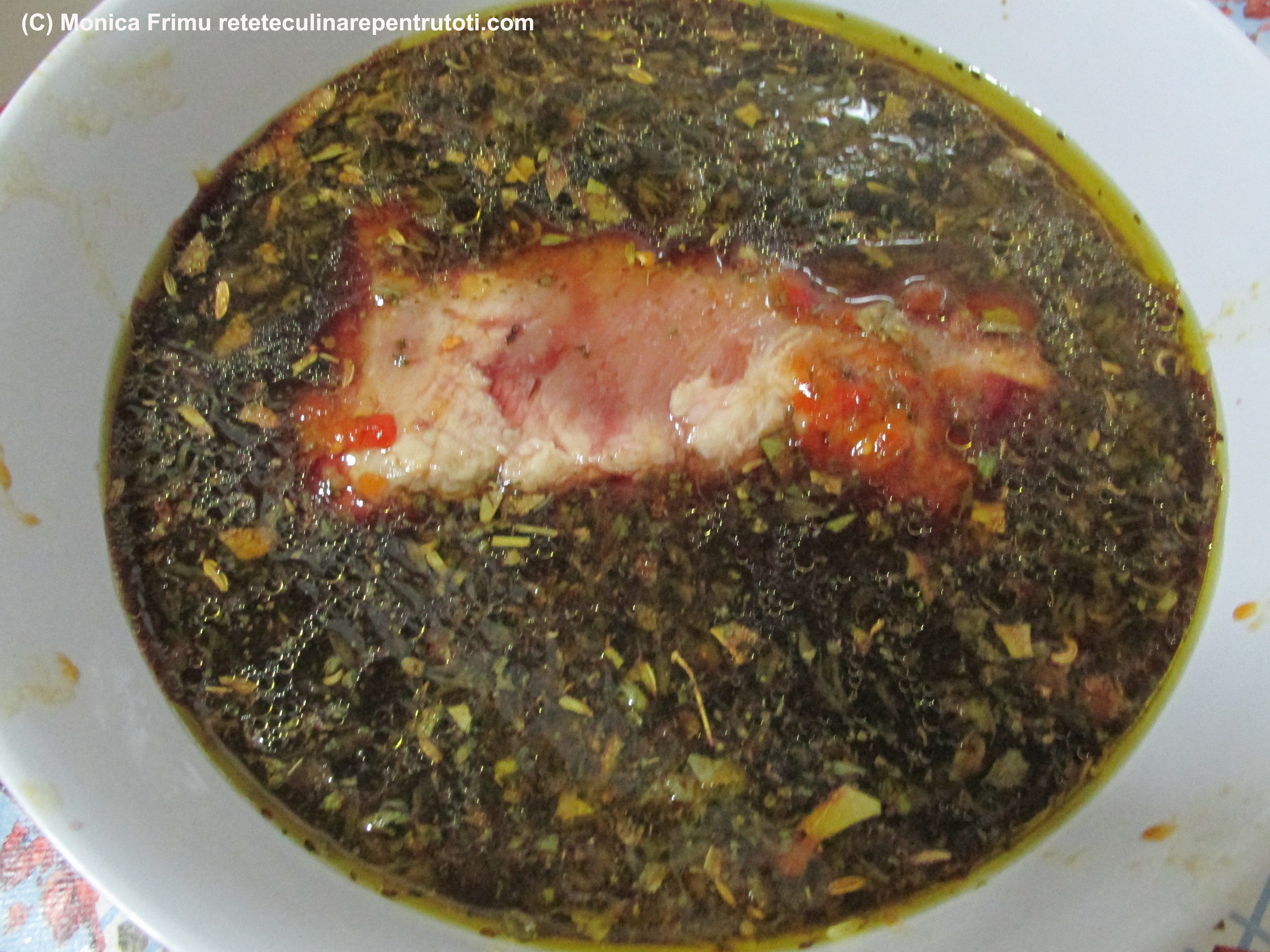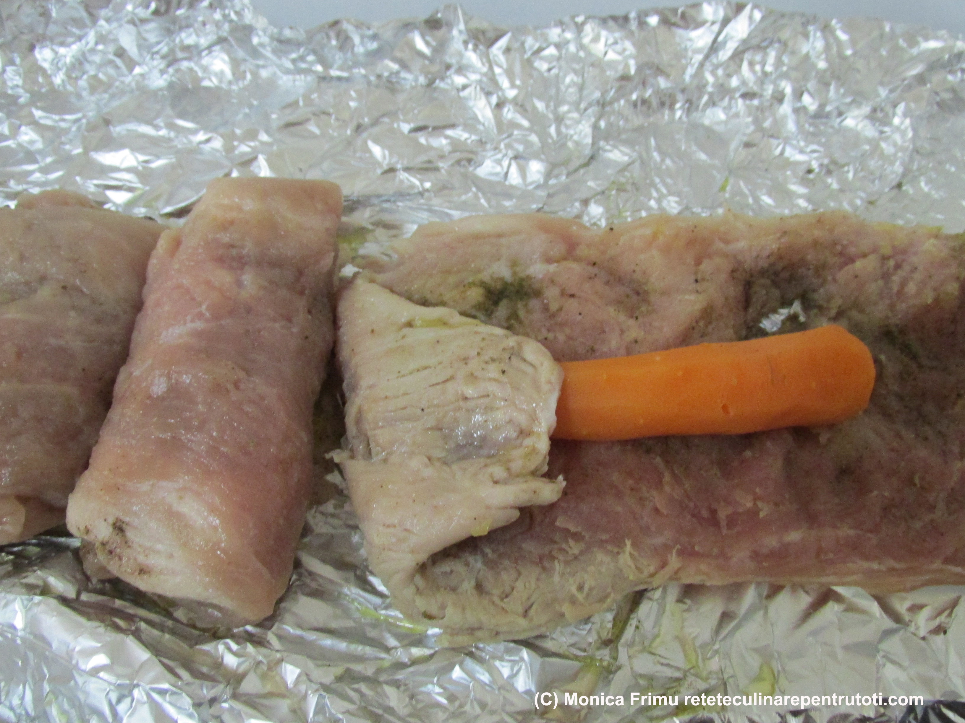 – 200 g paste scoici, 1 ceapă verde, 60 g mușchiuleț de porc, 100 g brânză topită cu șuncă (tub), 50 g telemea, 2 linguri smântână, 2 ouă, 2 linguri semințe de floarea-soarelui, 1 lingură măghiran uscat, sare, piper alb, margarină, ulei