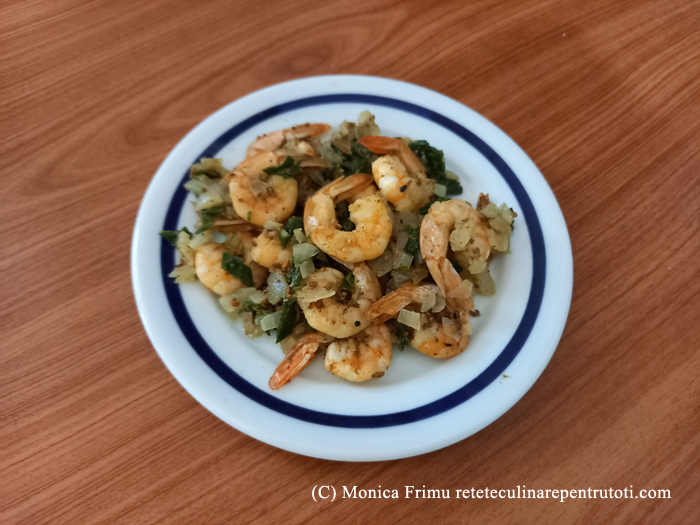 Creveți aromați cu ceapă verde