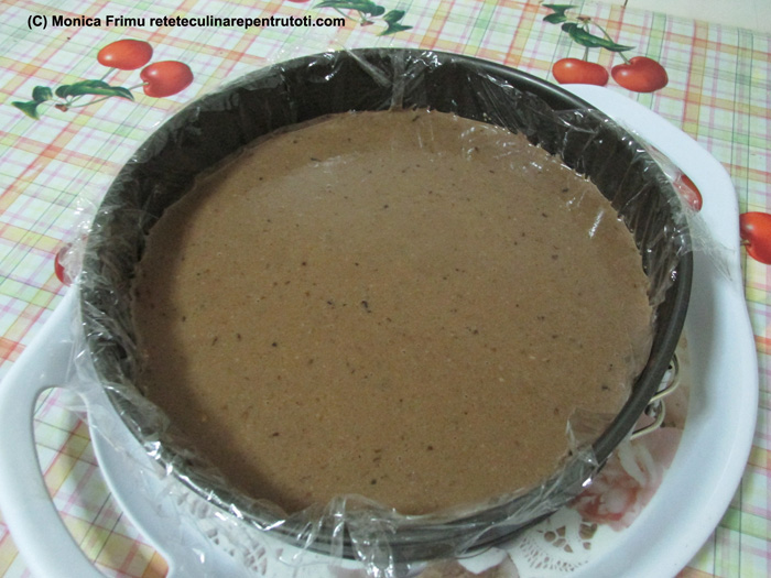 Curățăm prunele proaspete de coajă și sâmburi apoi pasăm. Amestecăm cu zahărul praf și iaurtul. Hidratăm gelatina în 100 ml apă rece 10 minute apoi o dizolvăm pe foc mic, amestecând aproximativ 1 minut, având grijă să NU fiarbă. Răcorim și o încorporăm în compoziția cu iaurt. Punem în frigider până iaurtul începe să se întărească, aproximativ 30 minute. Întindem uniform peste blat și punem în frigider până a doua zi. Îndepărtăm hârtia și așezăm prăjitura pe un platou. Porționăm și servim.