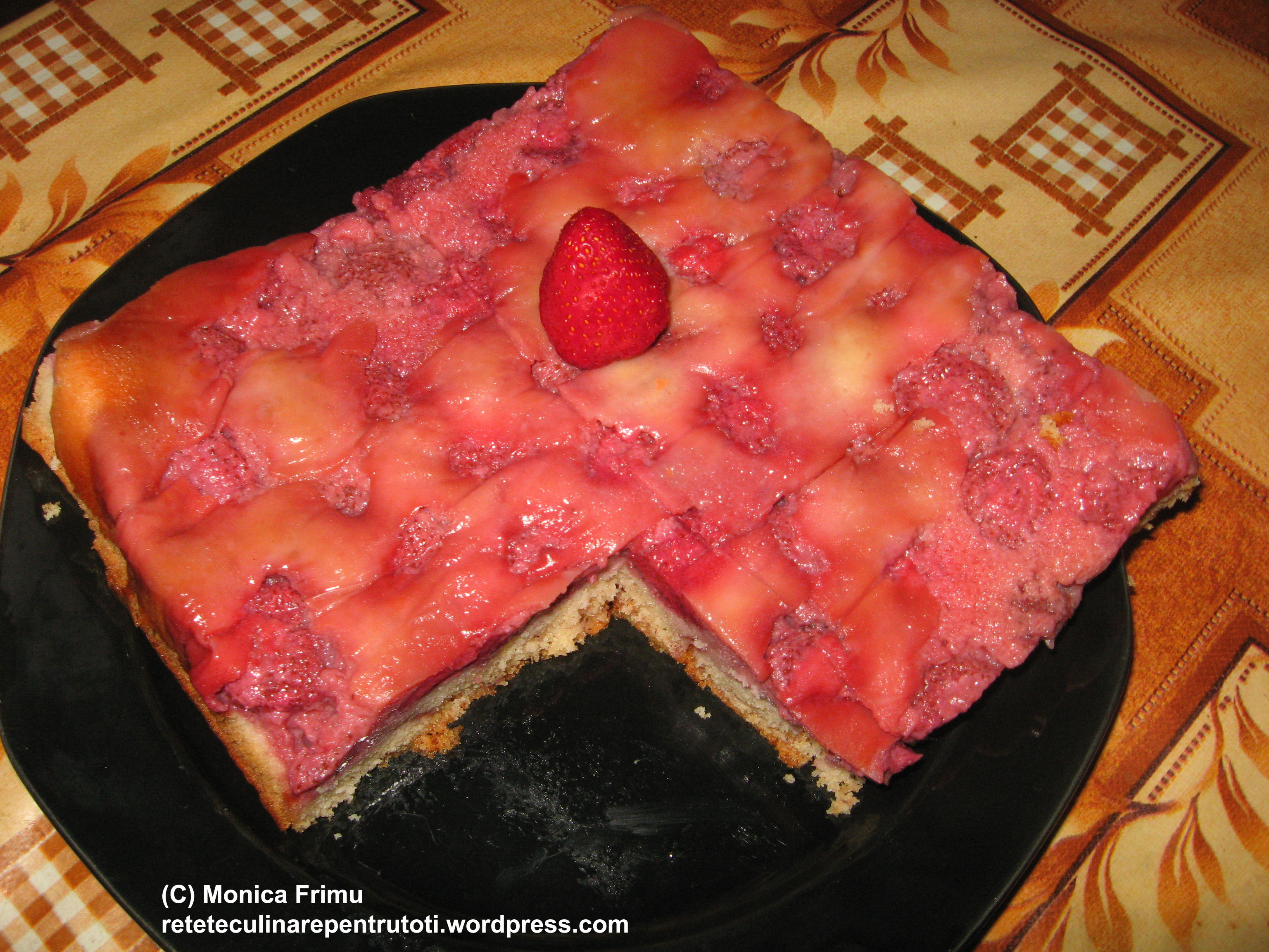 – 1 kg căpșuni, 7 ouă, 300 g zahăr, 1 plic zahăr vanilat, 250 g făină, 1 plic praf de copt, 100 ml ulei, 1 lingură rom