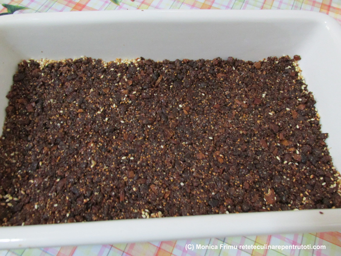– pt. blat de bezea- 3 albușuri de ou, 120 g zahăr, 3 linguri făină, 100 g nuci tăiate, 60 g stafide, 50 ml rom