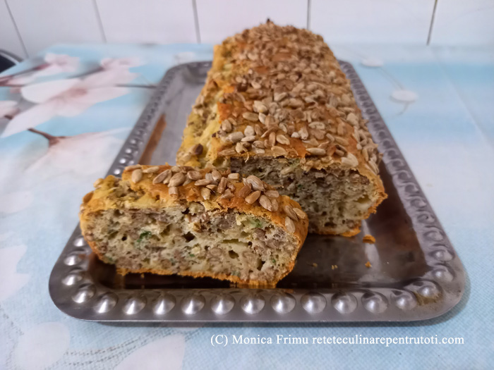 – 4 ouă, 250 g făină, 1 plic praf de copt, 100 g cașcaval, 100 g cărnăciori afumați, 25 g mix semințe, 50 g iaurt, 2 linguri pătrunjel verde tocat mărunt, ulei, sare