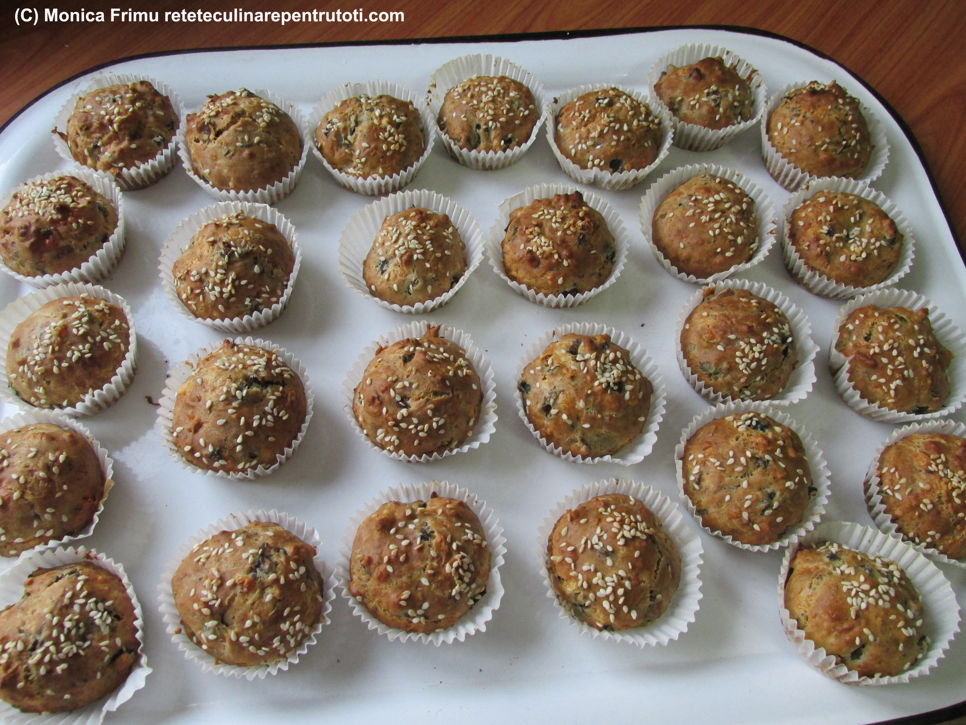 Rulăm, ungem cu 1 ou bătut, presărăm seminţele de mac şi susan și așezăm într-o tavă tapetată cu hârtie de copt .