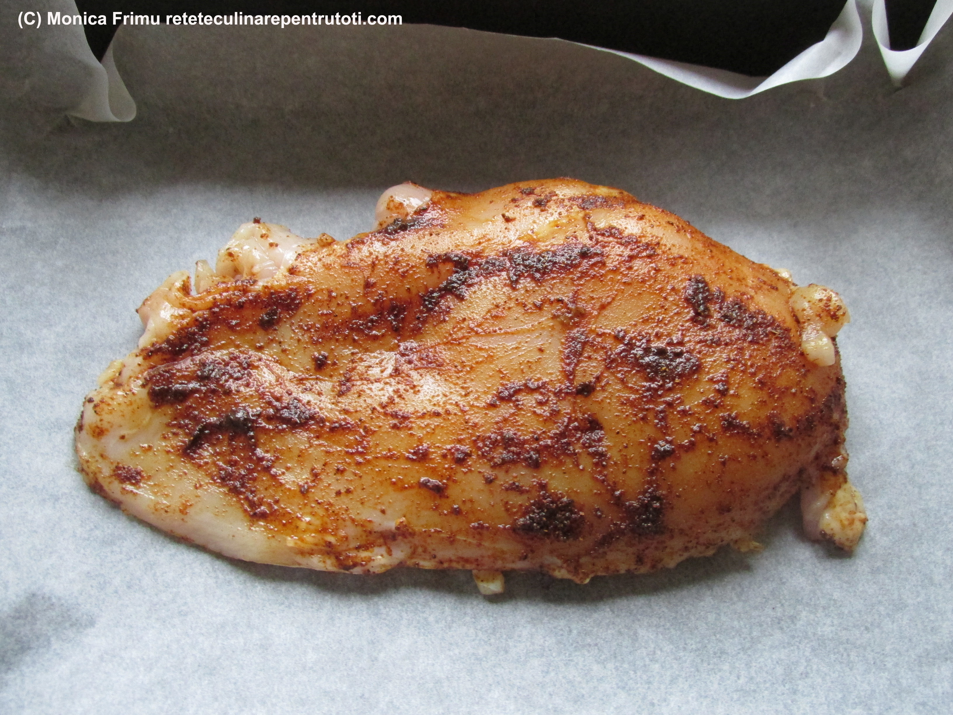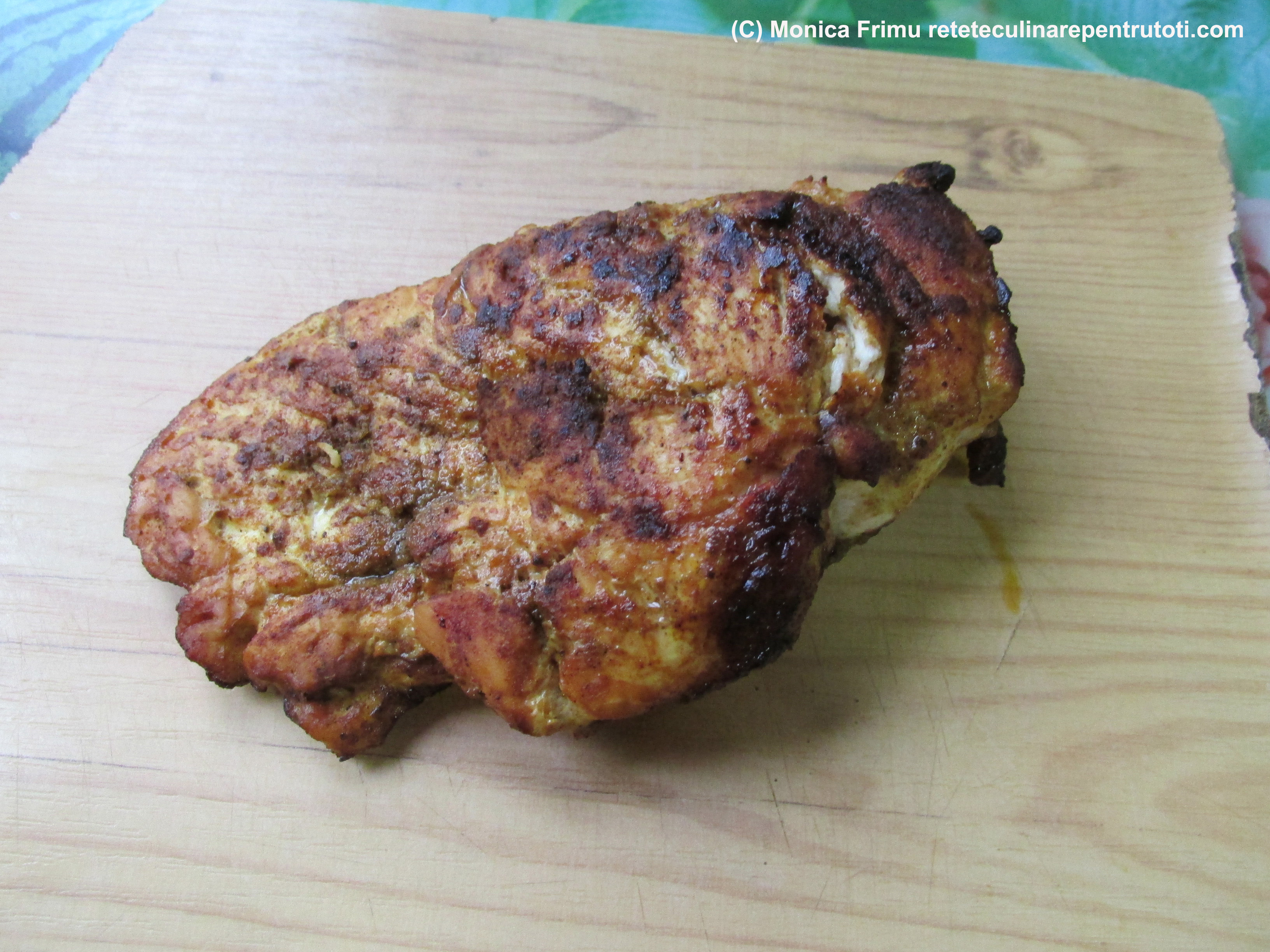 Curăţăm pulpa de pieliţe, spălăm bine, ungem cu iaurt şi punem în frigider 24 ore.