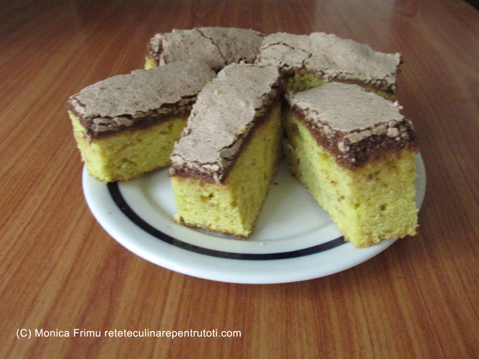 Mizăm albușurile spumă tare cu un praf de sare. Frecăm untul spună, adăugăm pe rând gălbenușurile și amestecăm bine. Încorporăm pasta de cacao, împărțim compoziția ½. O jumătate o punem în frigider. O vom folosi ca și cremă. În cealaltă jumătate punem făina și amestecăm cu o lingură. Încorporăm albușurile și turnăm compoziția într-o formă de tort tapetată cu hârtie de copt. Punem în cuptorul preîncălzit la foc mic aproximativ 20-25 minute (testul cu scobitoarea).