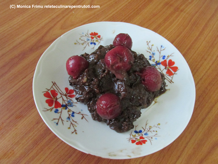 – pt. vișinele caramelizate- 400 g vișine, 6 linguri zahăr, ½ linguriță scorțișoară măcinată, 100 ml apă