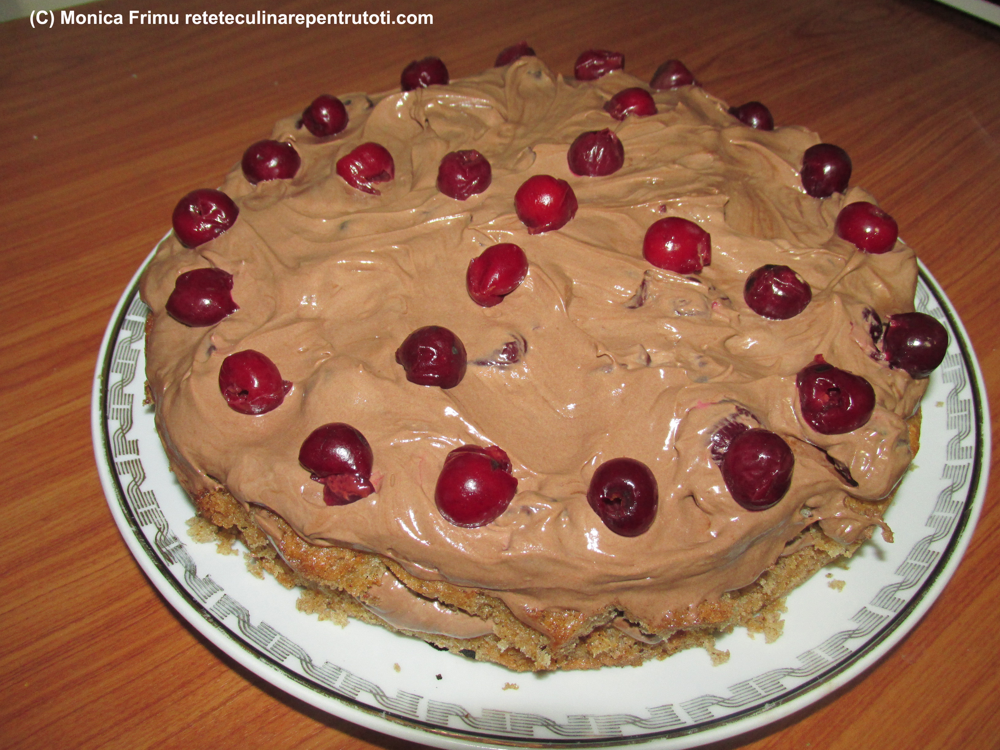 – pt. cremă- 200 g ciocolată cu lapte, 100 g cacao, 120 g zahăr, 80 g unt, 100 ml lapte, 400 ml frișcă, 10 g gelatină; în plus 300 g vișine fără sâmburi
