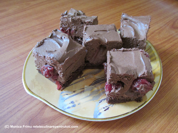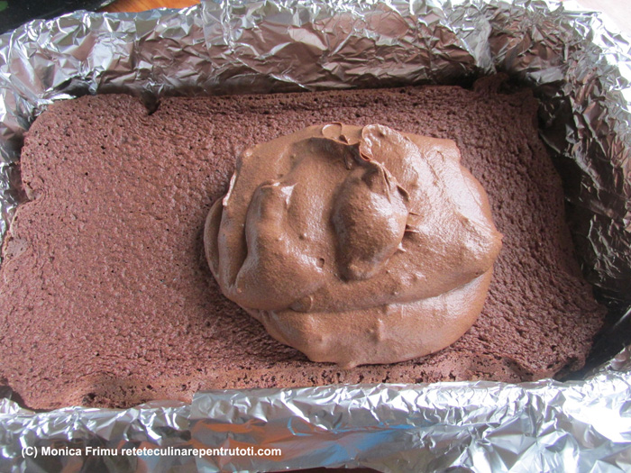 – pt. blat- 6 albușuri de ou, 2 gălbenușuri de ou, 4 linguri zahăr, 2 linguri cacao, 3 linguri făină, 1 lingură apă rece